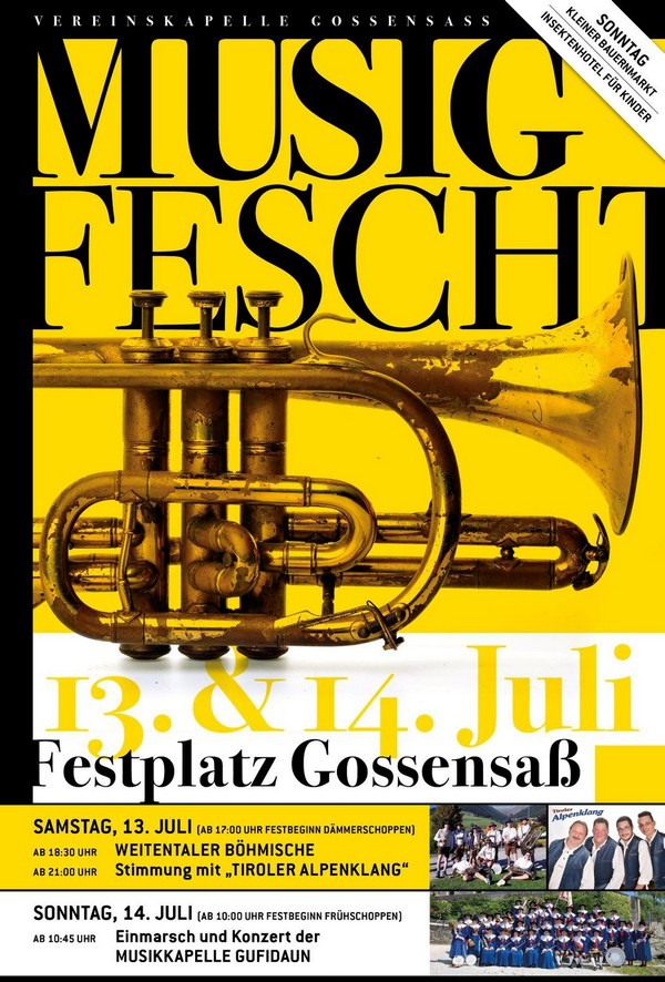 | Sa., 13.07.2019 | I - Gossensass | Vereinskapelle Gossensass | Zeltfest beim Festplatz | Musikfest | - 21:00 - |