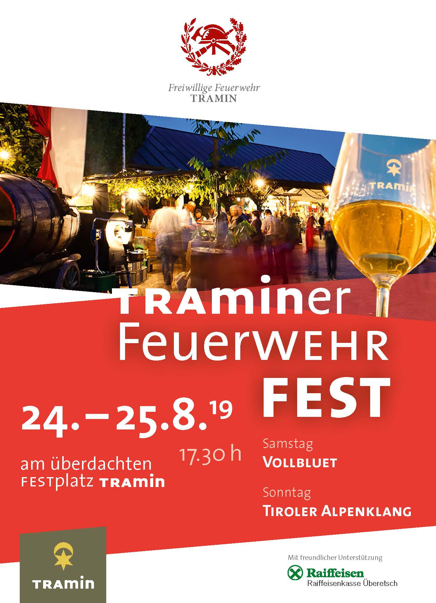 | So., 26.08.2018 | I - Tramin | Freiwillige Feuerwehr Tramin | Festplatz | Feuerwehrfest | - 18:00 - |