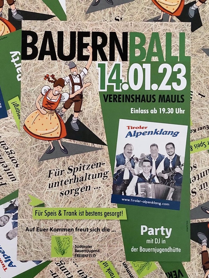 | Sa., 14.01.2023 | I - Mauls | Bauernjugend Freienfeld | Haus der Dorfgemenschaft Mauls | Ball der Bauernjugend Freienfeld | - 20:30 - |