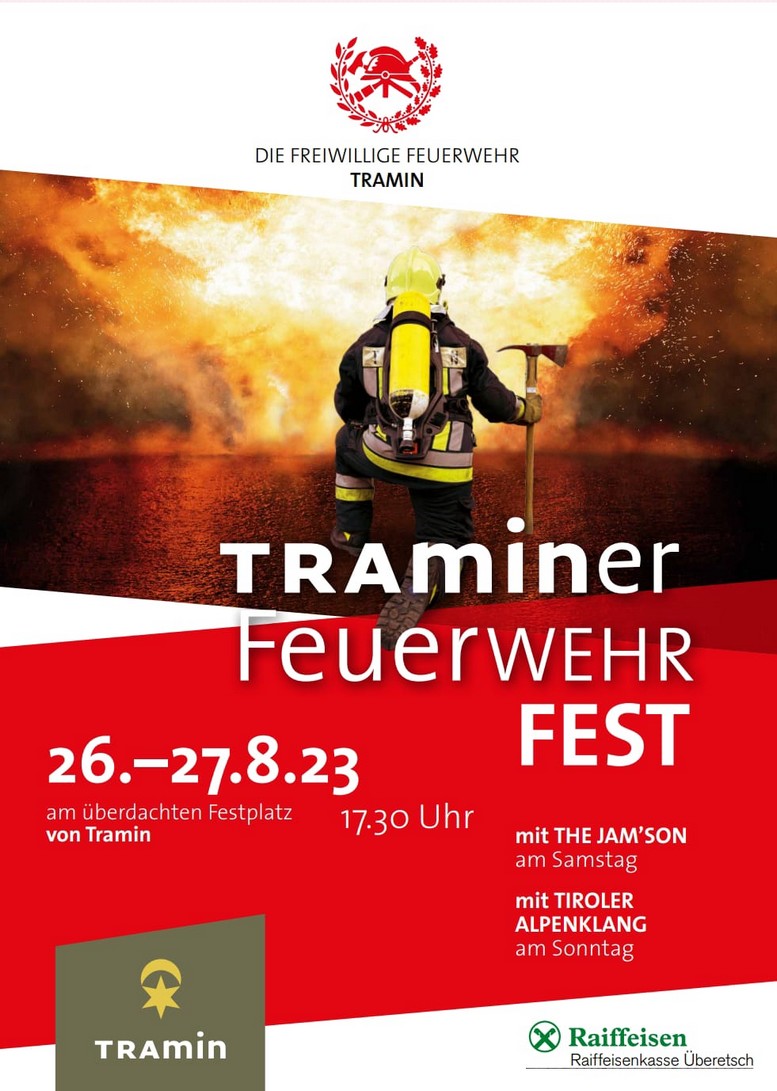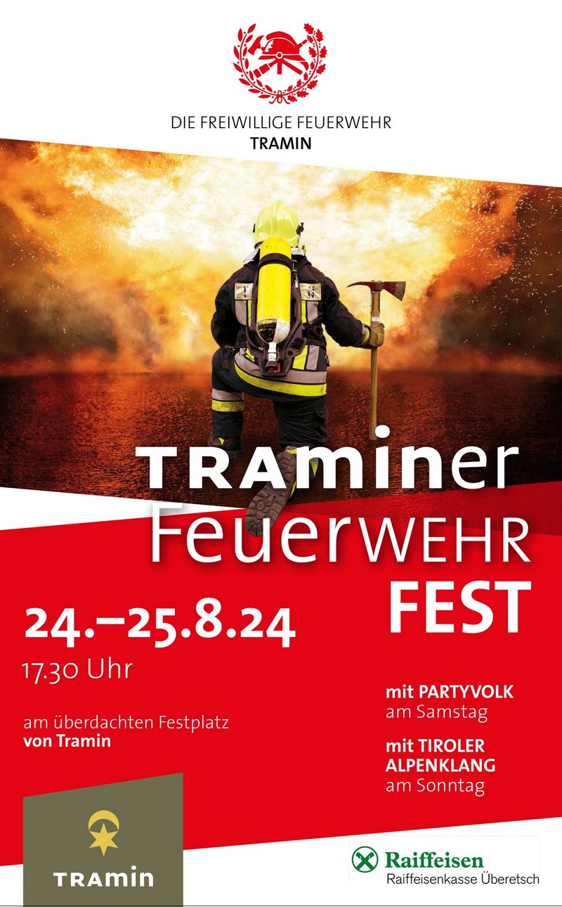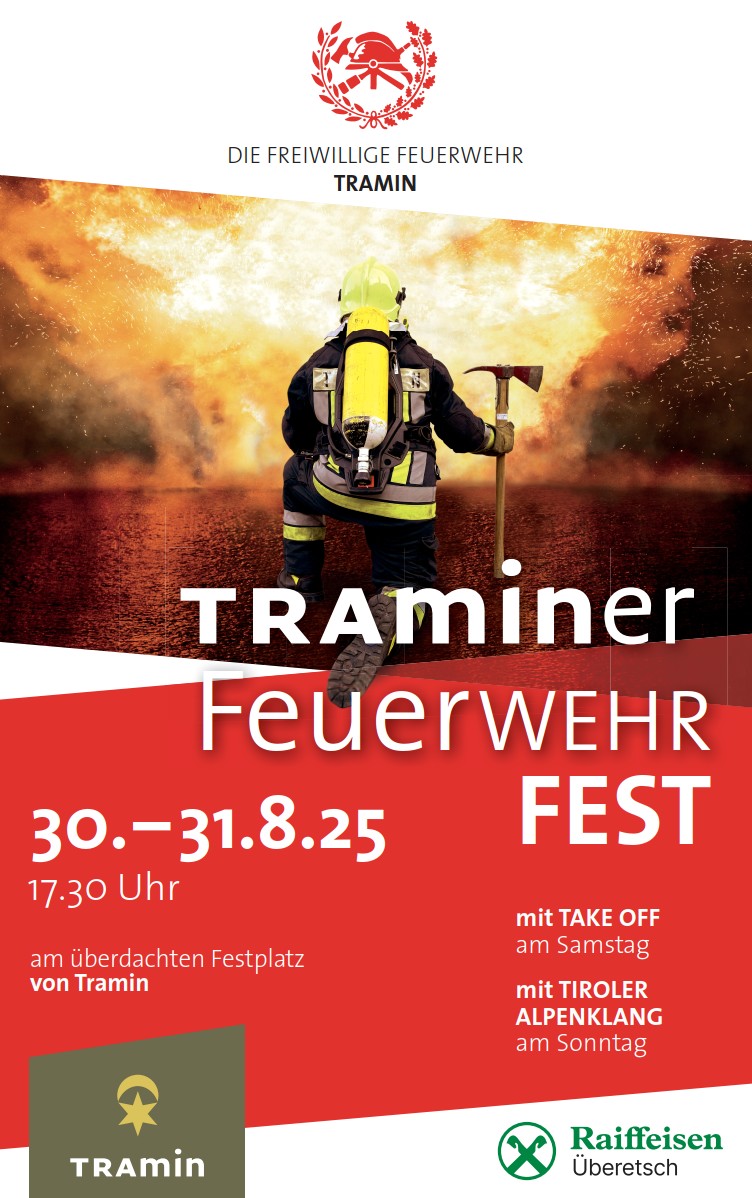 | So., 25.08.2024 | I - Tramin | Freiwillige Feuerwehr | Überdachter Festplatz | Feuerwehrfest | - 17:30 - |